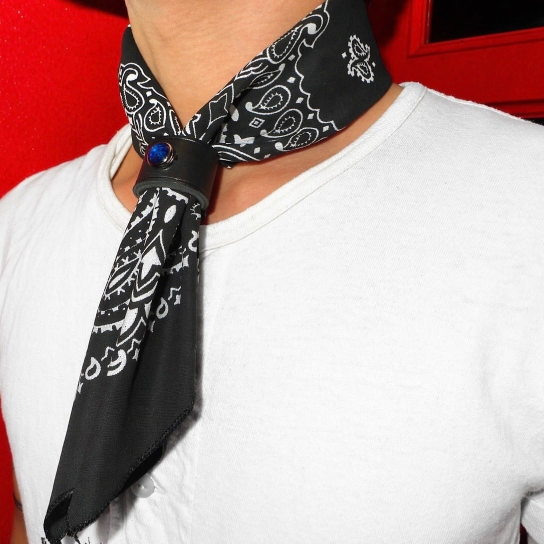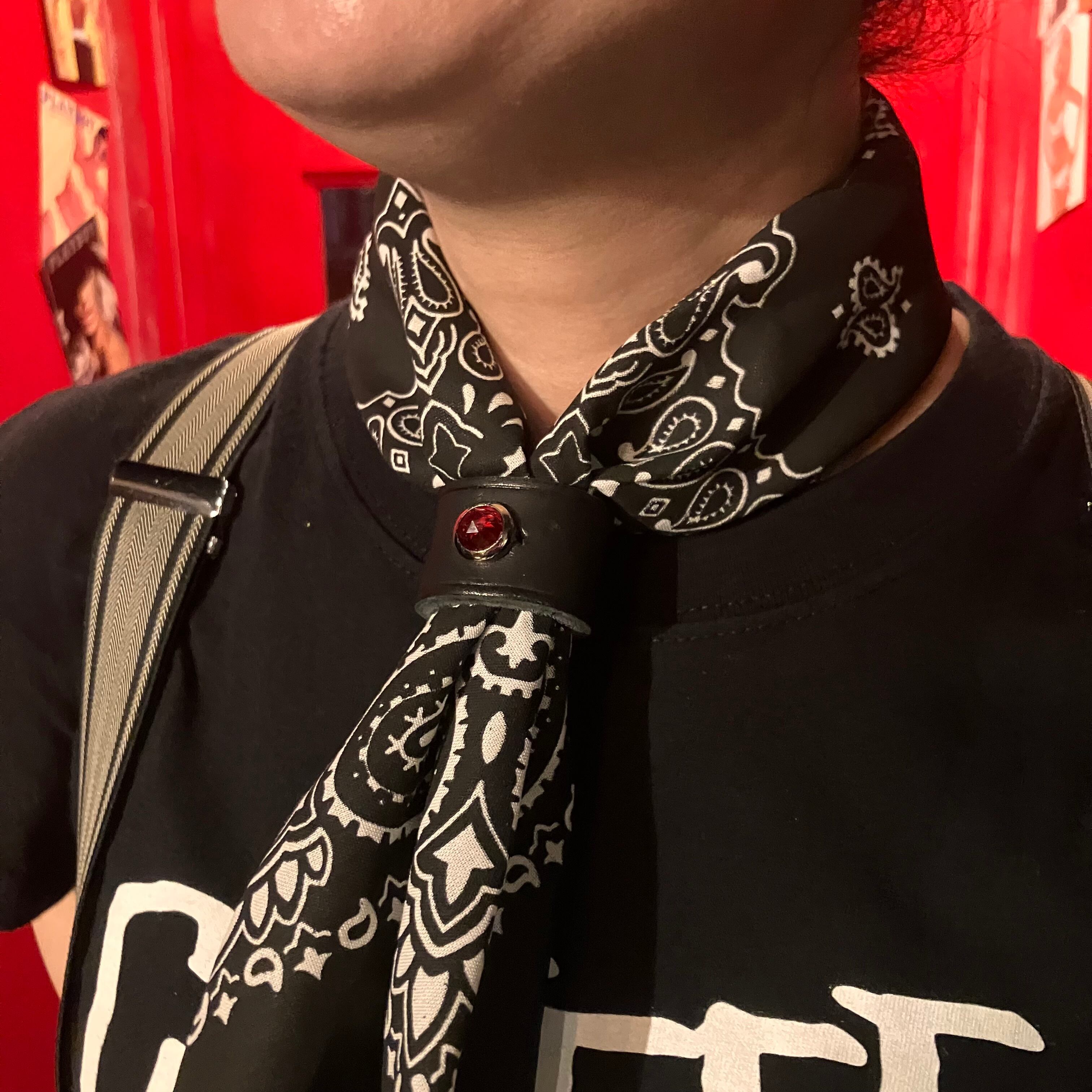 LEATHER STUDDED SCARF RING【RED】